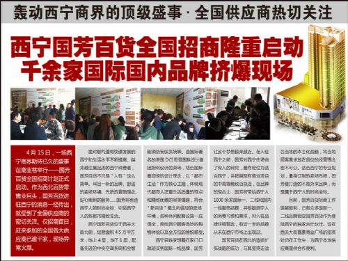 4月15日,一場(chǎng)西寧商界期待已久的盛事在商業(yè)巷舉行——國(guó)芳百貨全國(guó)招商計(jì)劃正式啟動(dòng)。作為西北百貨零售業(yè)巨頭,國(guó)芳百貨進(jìn)駐西寧的消息一經(jīng)傳出,就受到了全國(guó)供應(yīng)商的密切關(guān)注。僅招商首日,趕來(lái)參加的全國(guó)各大供應(yīng)商已逾千家,現(xiàn)場(chǎng)異常火爆。