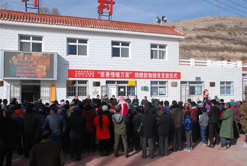 2016年1月21日由甘肅省慈善總會、甘肅國芳工貿(mào)集團(tuán)聯(lián)合開展的“慈善情暖萬家”捐贈物資接受發(fā)放儀式在青嵐山鄉(xiāng)大坪村隆重舉行。省慈善總會常務(wù)副會長張瑞堂同志、副會長張忠健同志,甘肅國芳工貿(mào)集團(tuán)副總經(jīng)理白海源先生,定西市政府副市長李斌同志及市區(qū)民政局、青嵐山鄉(xiāng)政府主要負(fù)責(zé)同志參加了儀式。省慈善總會聯(lián)合國芳工貿(mào)集團(tuán)籌措價(jià)值120萬元的衣物5100多件,資助青嵐山鄉(xiāng)3000多戶困難群眾,幫助他們解決穿衣方面的困難。