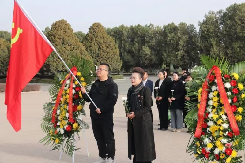 上午8時許,在莊嚴的革命烈士紀念碑前,全體黨員高舉黨旗、肅穆列隊,懷著無比崇敬的心情向革命烈士敬獻花籃,鞠躬默哀,以表達對革命先烈的崇高敬意和深切悼念之情。